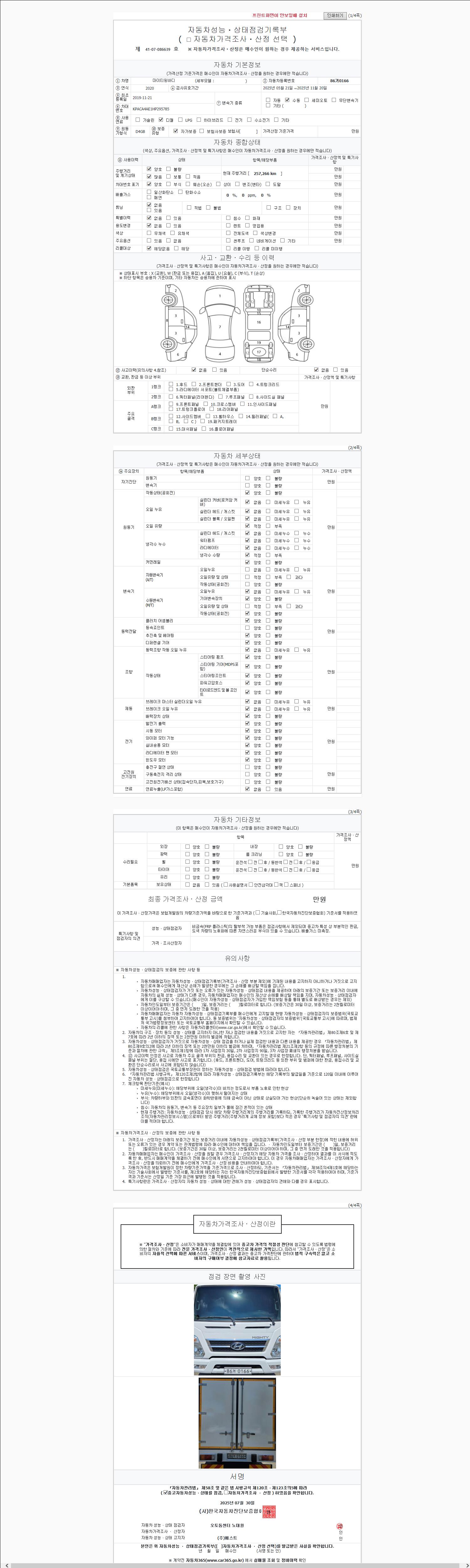 사고유무 성능기록부 참조 제시번호 제 2147483647 호