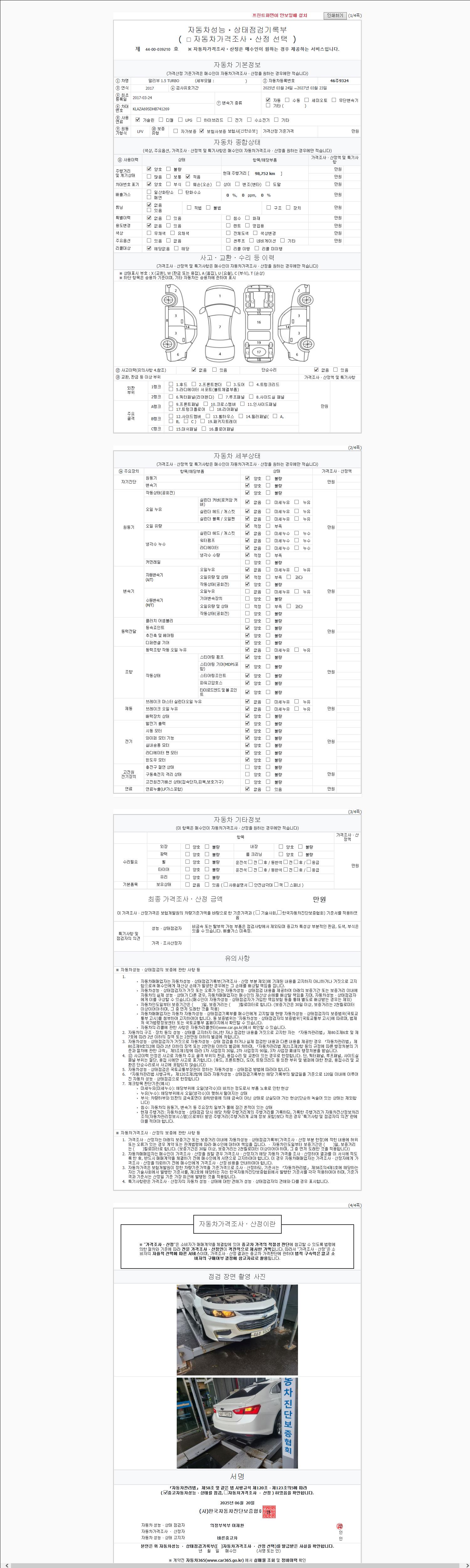 사고유무 성능기록부 참조 제시번호 제 2025112447 호