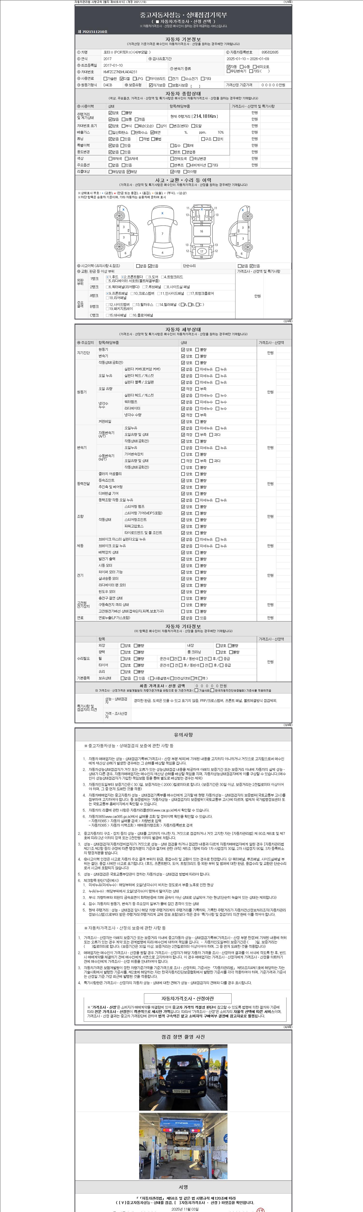 -중고자동차 매매업자를 통해 차량을 구입하실 경우 반드시 "중고자동차 성능, 상태점검 기록부"를 교뷰 받으셔야 하며, 매매업자는 반드시 의무 교부 하여야 압니다.
