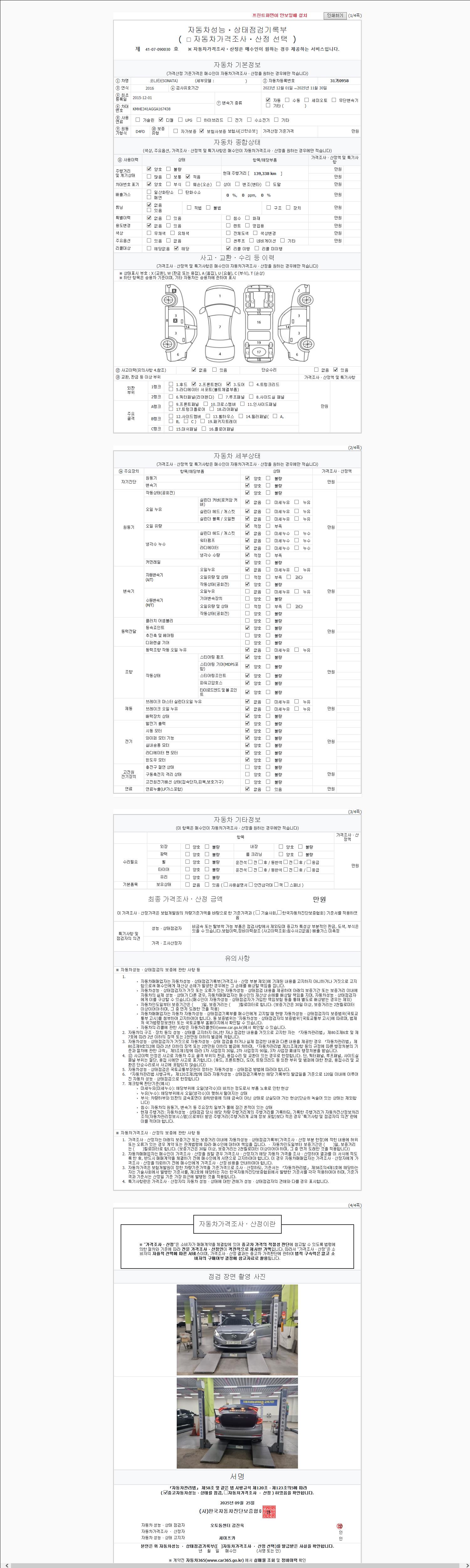 -중고자동차 매매업자를 통해 차량을 구입하실 경우 반드시 "중고자동차 성능, 상태점검 기록부"를 교뷰 받으셔야 하며, 매매업자는 반드시 의무 교부 하여야 압니다.