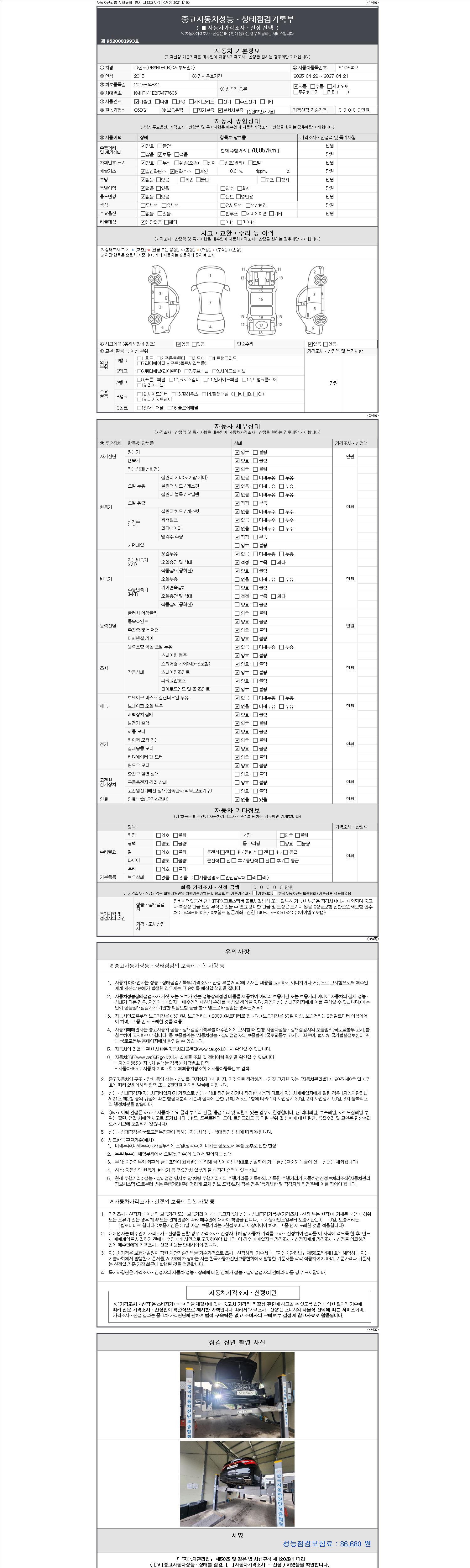 2. 차량 등록증이나 성능점검지 등을 상담자에게 요청및 확인하시고 사전에 미리 점검 하시기를 권유드립니다.