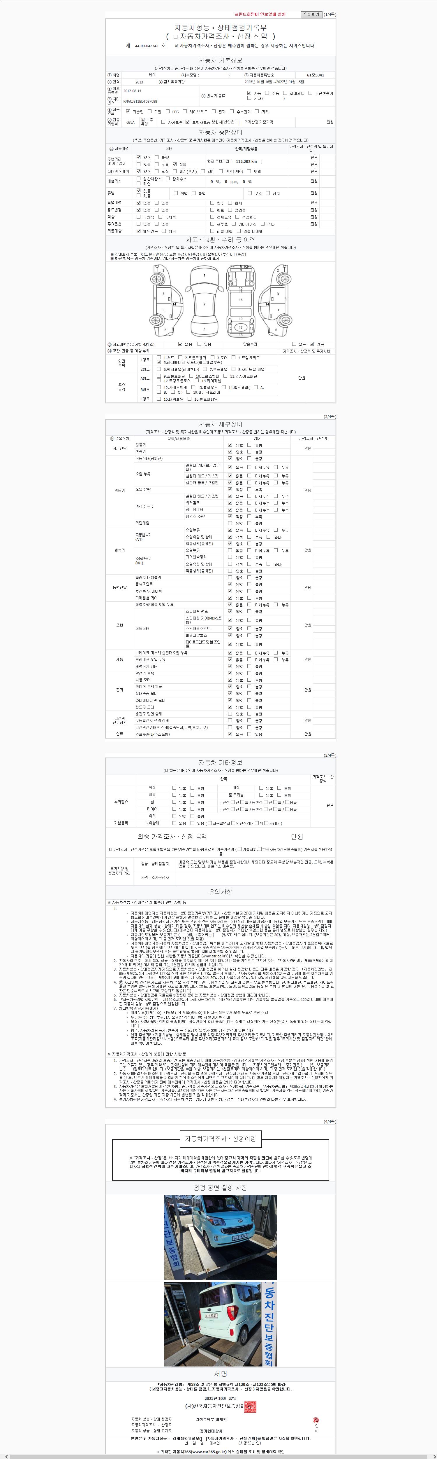 2. 차량 등록증이나 성능점검지 등을 상담자에게 요청및 확인하시고 사전에 미리 점검 하시기를 권유드립니다.