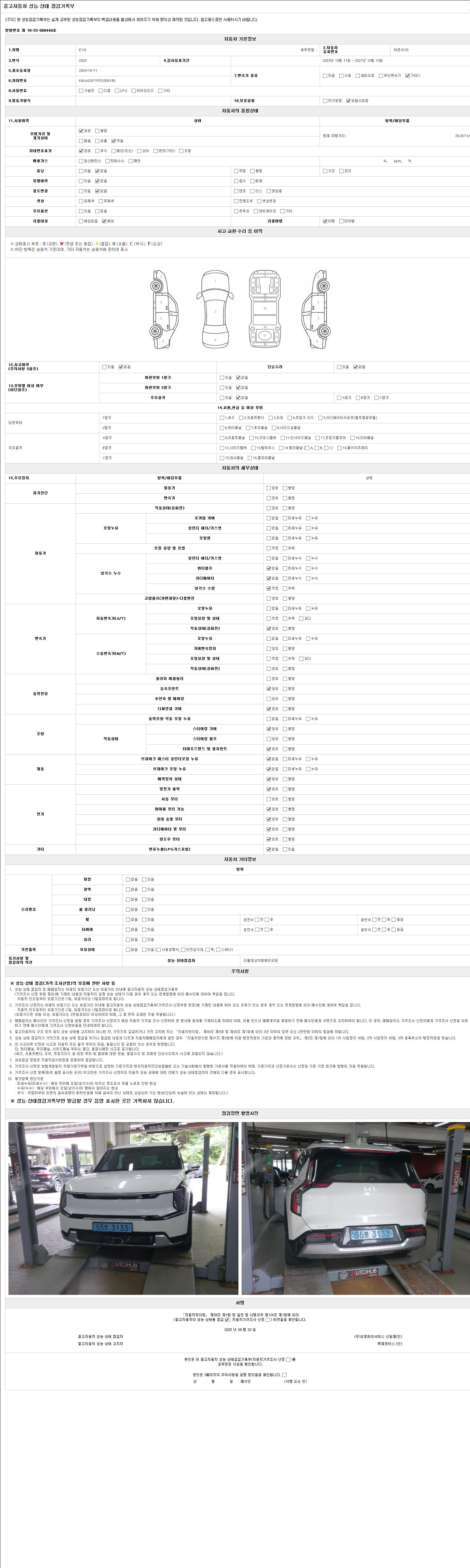 2. 차량 등록증이나 성능점검지 등을 상담자에게 요청및 확인하시고 사전에 미리 점검 하시기를 권유드립니다.