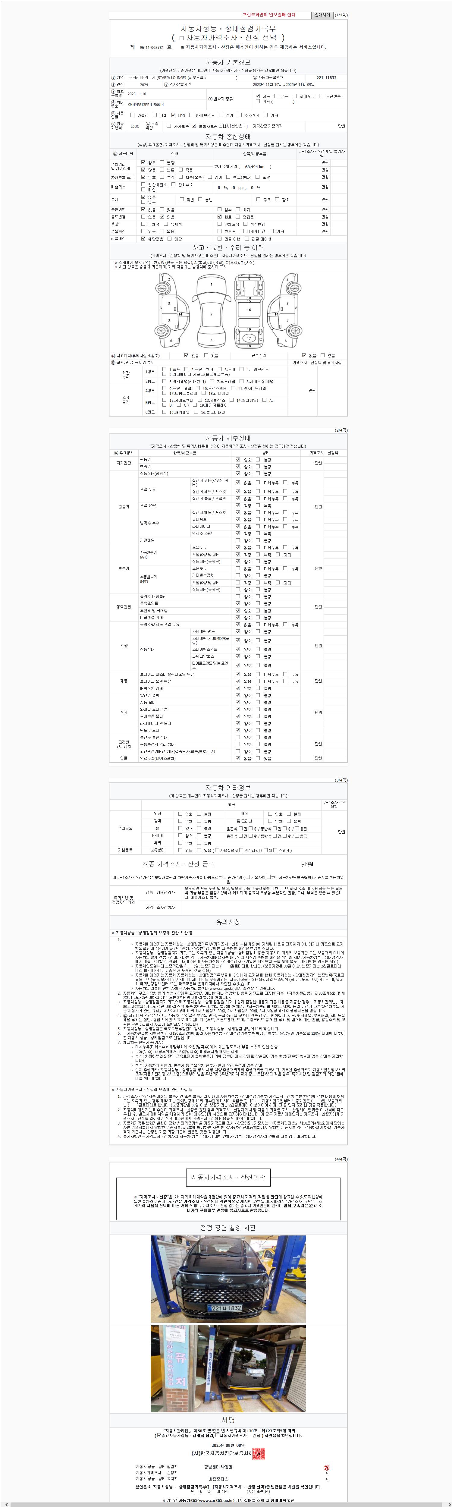 2. 차량 등록증이나 성능점검지 등을 상담자에게 요청및 확인하시고 사전에 미리 점검 하시기를 권유드립니다.