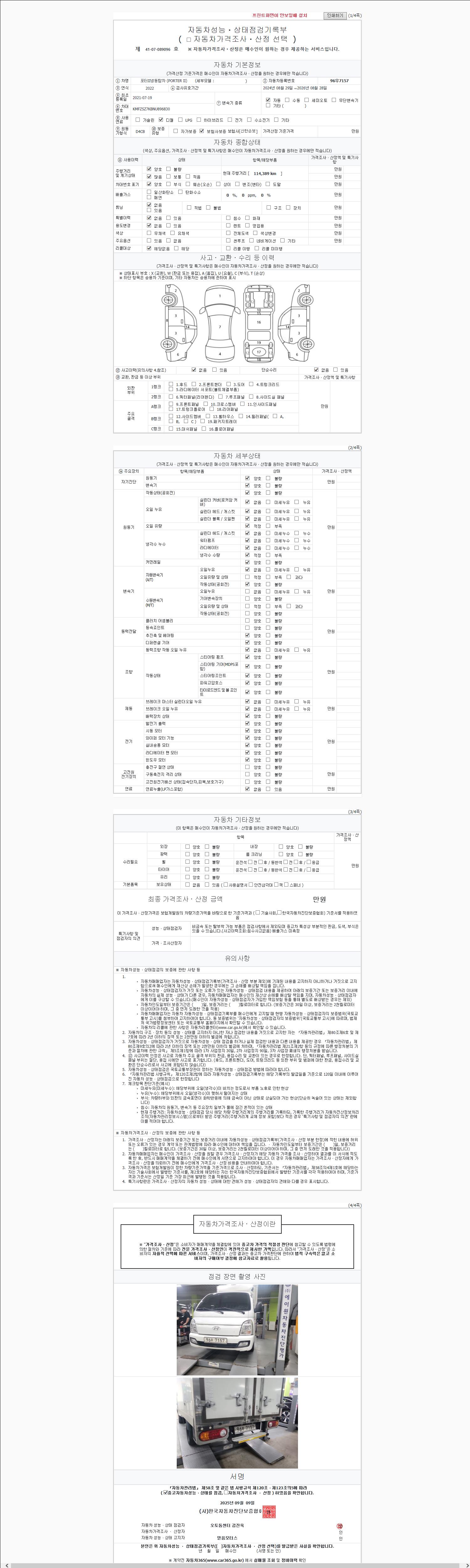 사고유무 성능기록부 참조 제시번호 제 2147483647 호