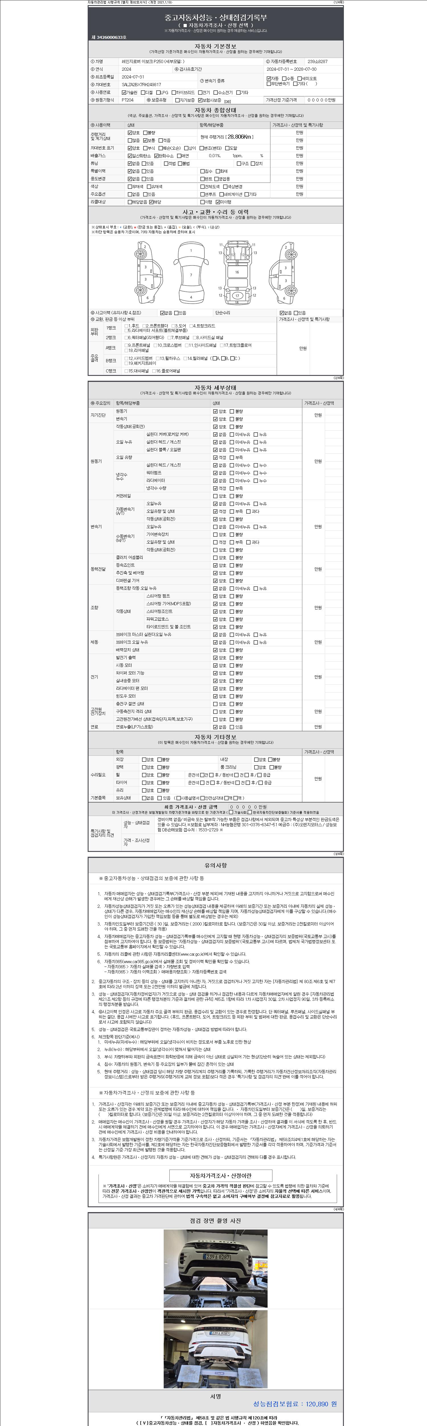 2. 차량 등록증이나 성능점검지 등을 상담자에게 요청및 확인하시고 사전에 미리 점검 하시기를 권유드립니다.
