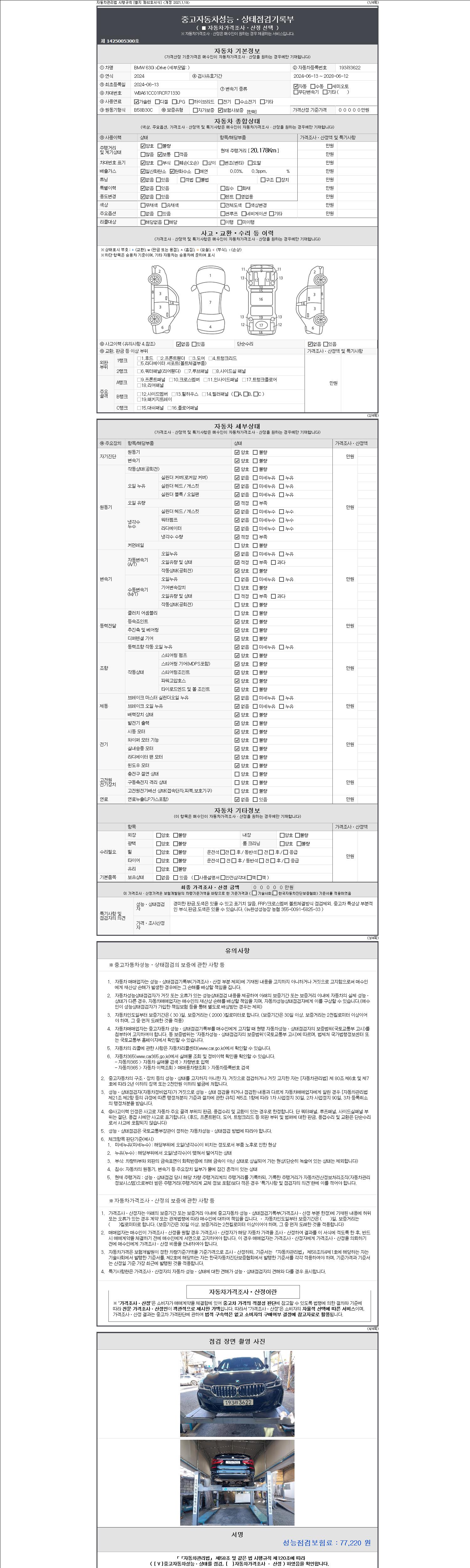 3. 차량의 이미지중 차량번호가 의도적으로 가공, 편집 된 경우나 지나치게 가격이 낮을 경우 더욱 세심한 주위를 요구합니다.