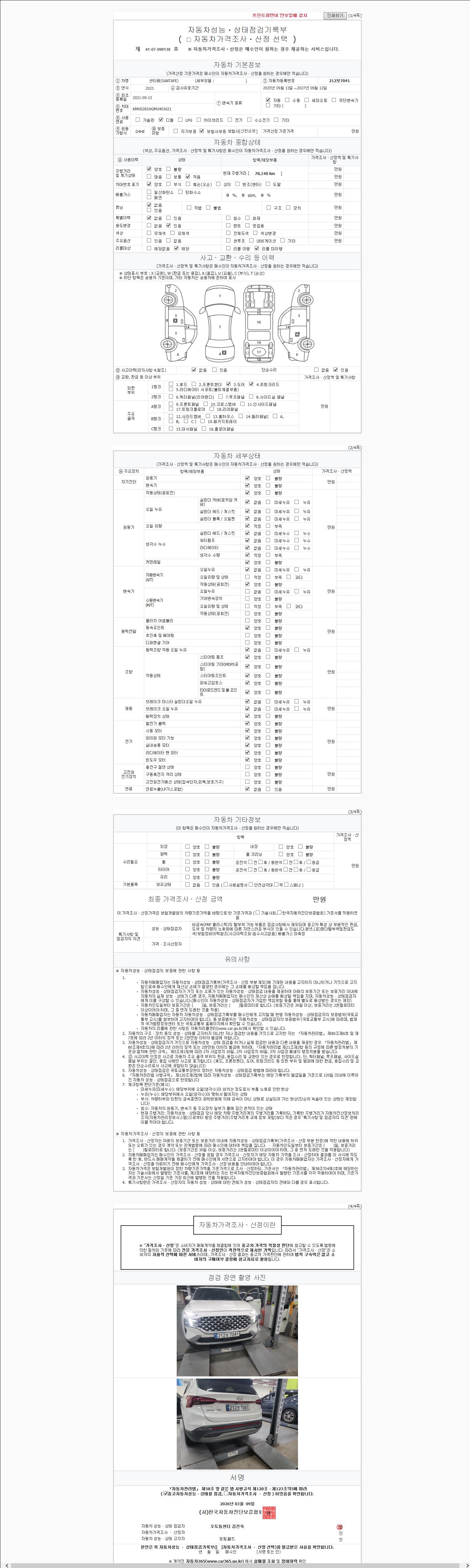 2. 차량 등록증이나 성능점검지 등을 상담자에게 요청및 확인하시고 사전에 미리 점검 하시기를 권유드립니다.