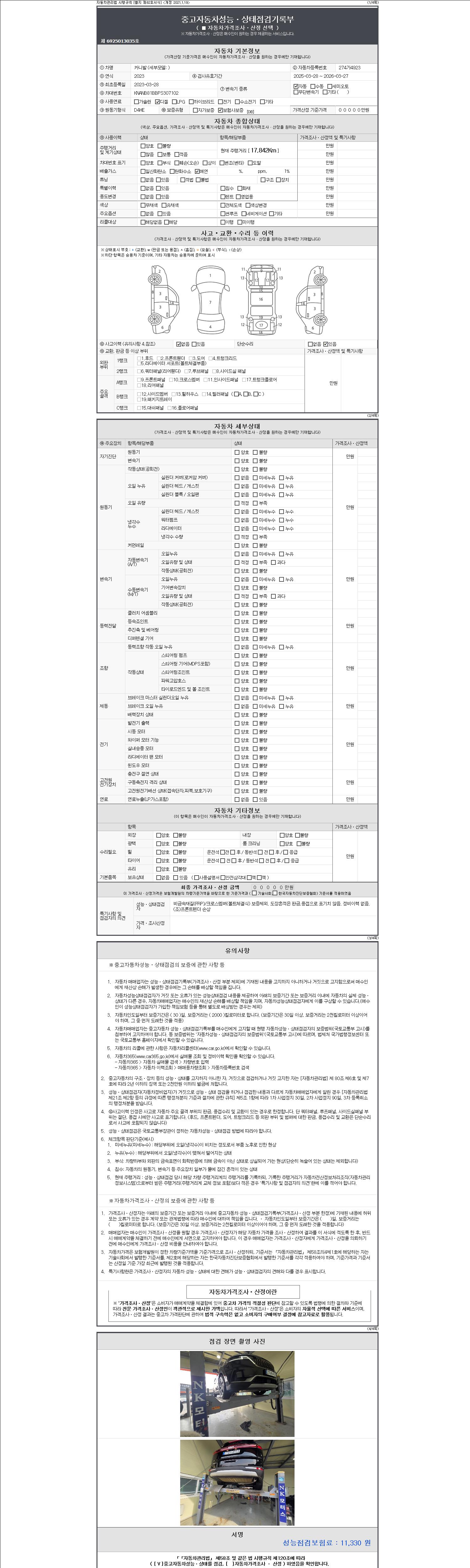 2. 차량 등록증이나 성능점검지 등을 상담자에게 요청및 확인하시고 사전에 미리 점검 하시기를 권유드립니다.
