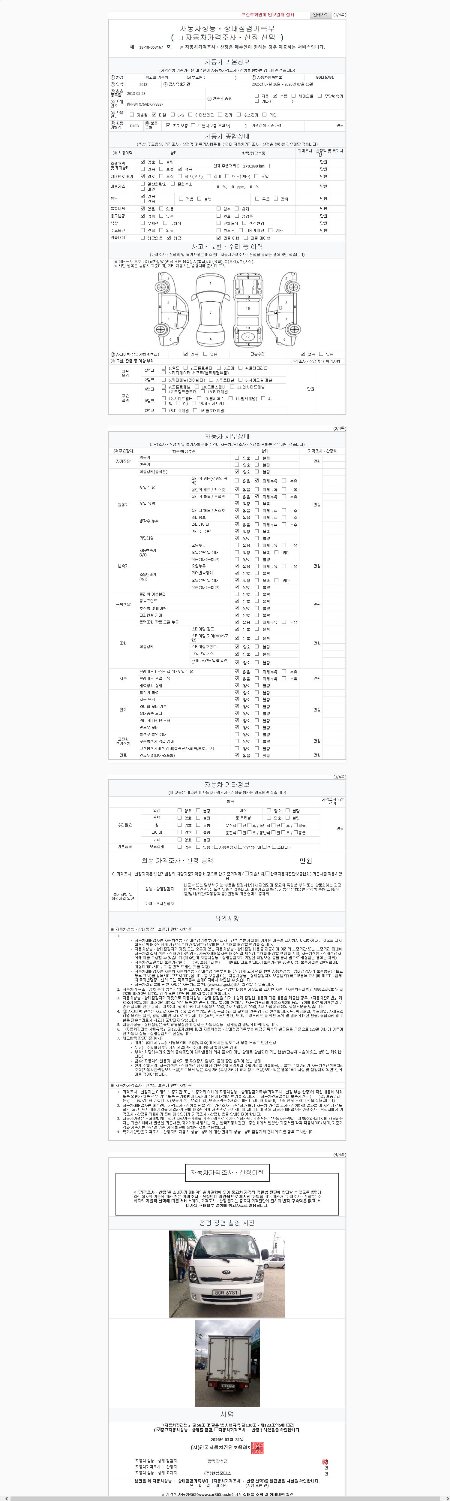 2. 차량 등록증이나 성능점검지 등을 상담자에게 요청및 확인하시고 사전에 미리 점검 하시기를 권유드립니다.