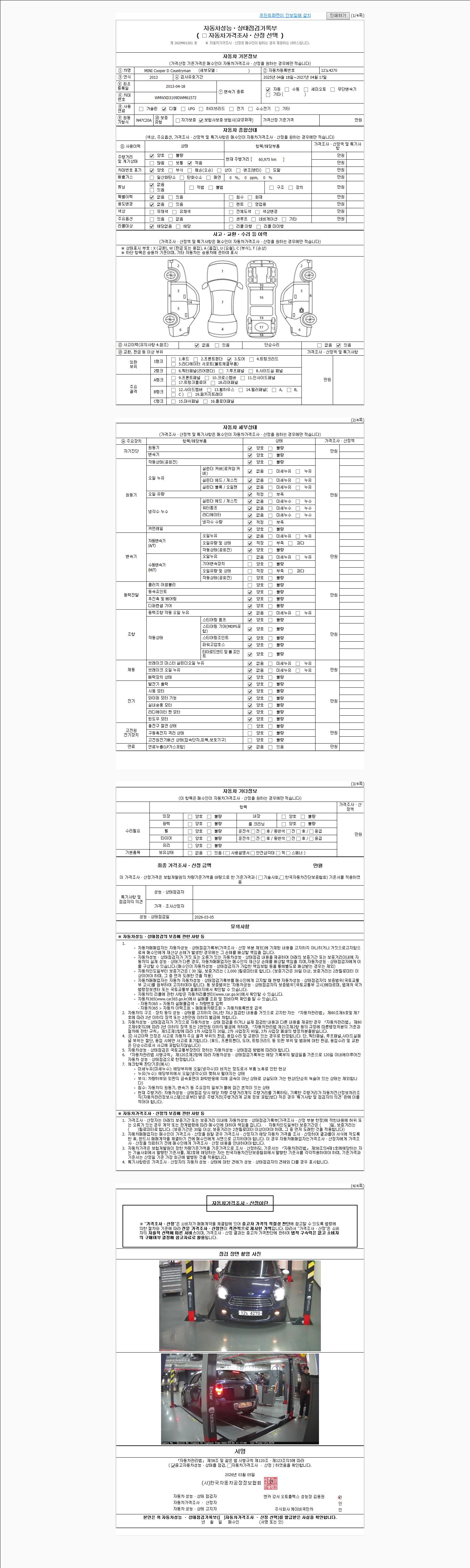 2. 차량 등록증이나 성능점검지 등을 상담자에게 요청및 확인하시고 사전에 미리 점검 하시기를 권유드립니다.