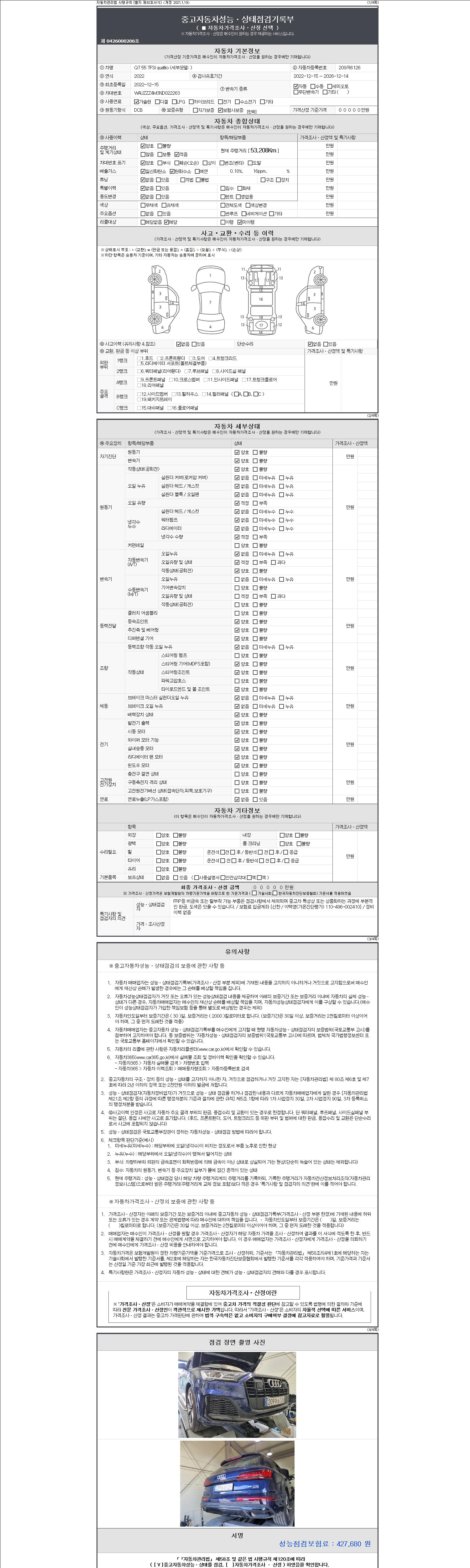 2. 차량 등록증이나 성능점검지 등을 상담자에게 요청및 확인하시고 사전에 미리 점검 하시기를 권유드립니다.