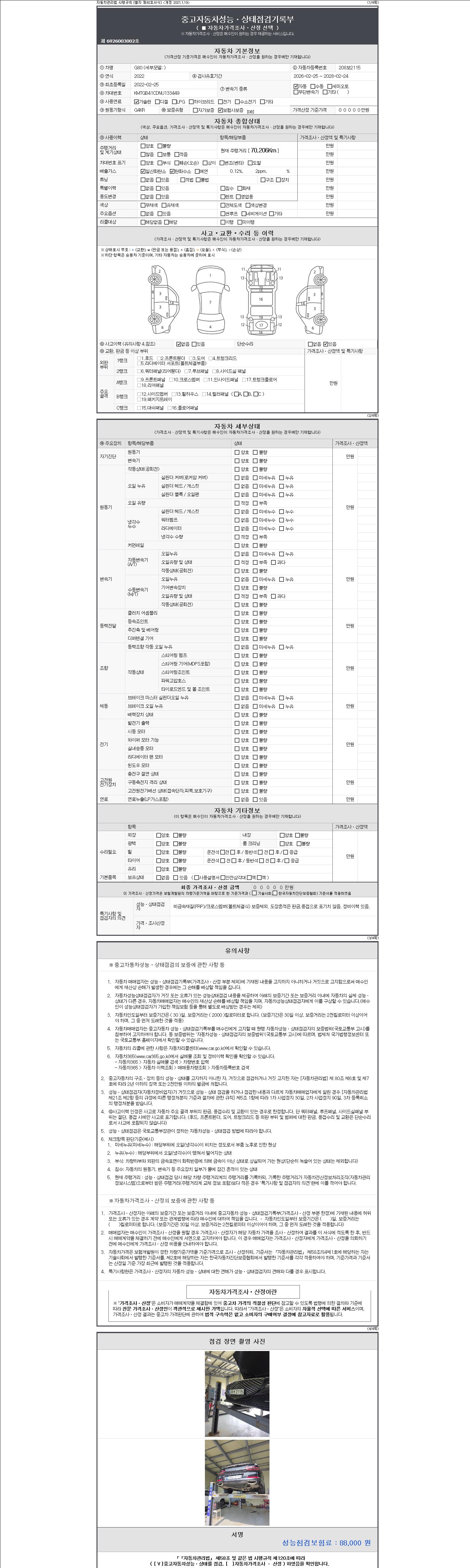 2. 차량 등록증이나 성능점검지 등을 상담자에게 요청및 확인하시고 사전에 미리 점검 하시기를 권유드립니다.