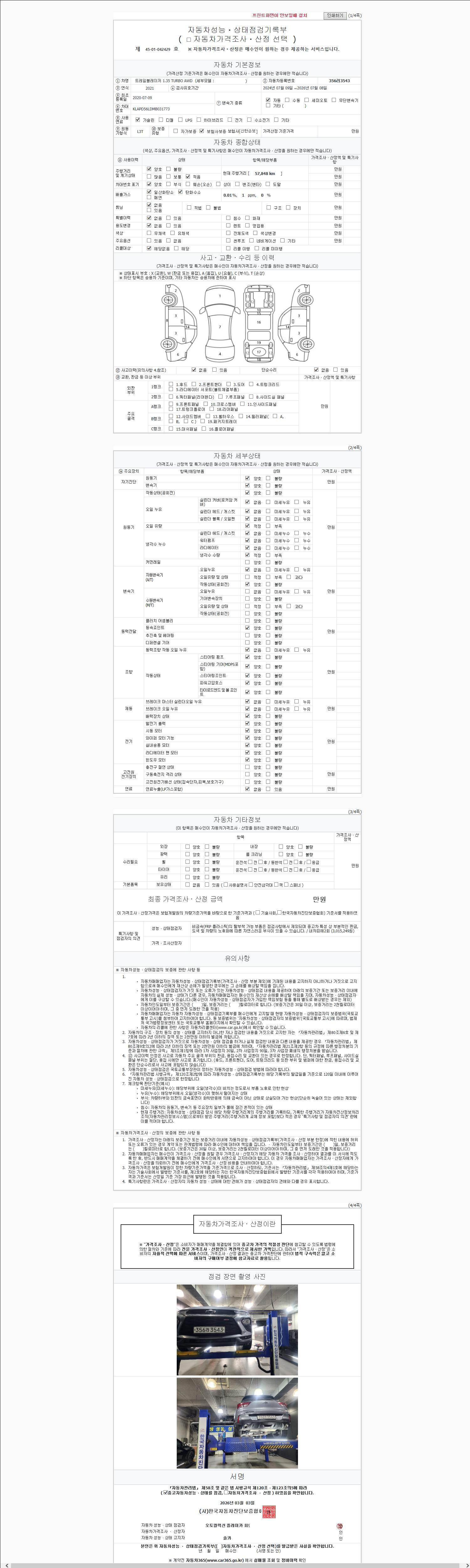 2. 차량 등록증이나 성능점검지 등을 상담자에게 요청및 확인하시고 사전에 미리 점검 하시기를 권유드립니다.