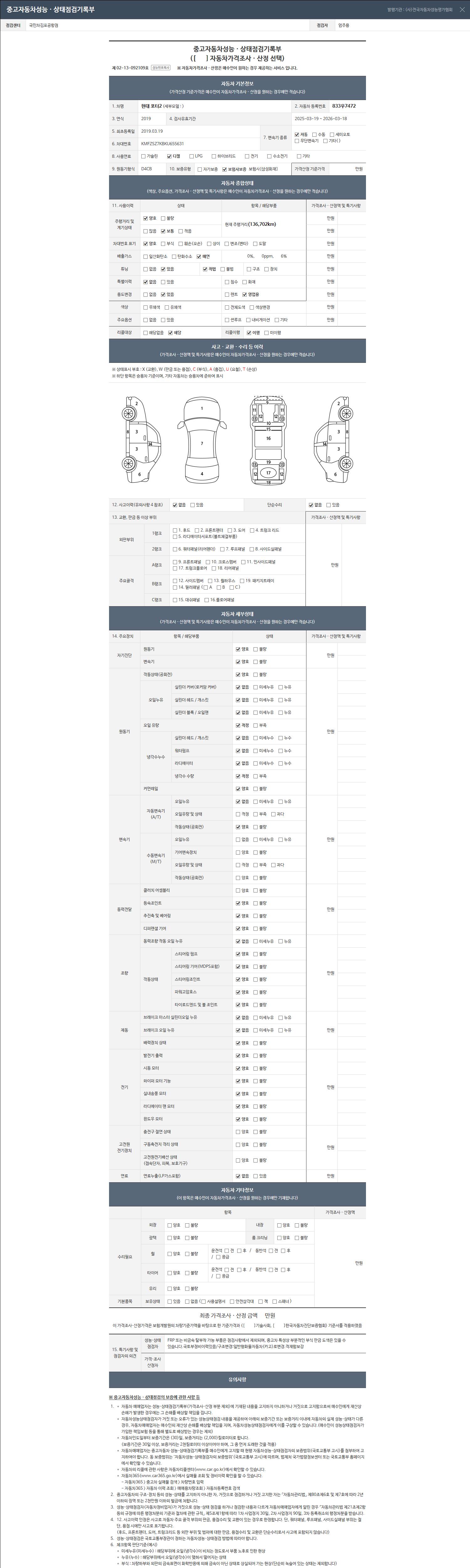 오토|경유|2019년 3월|136,702 km 833우7472| cc|흰색 |
