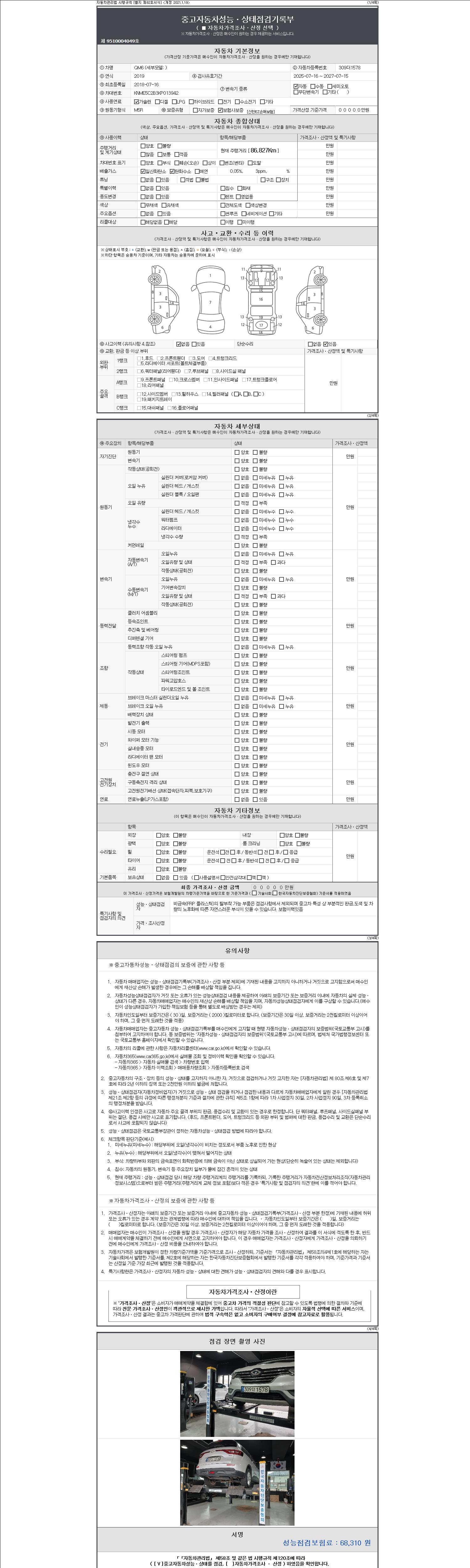 2. 차량 등록증이나 성능점검지 등을 상담자에게 요청및 확인하시고 사전에 미리 점검 하시기를 권유드립니다.
