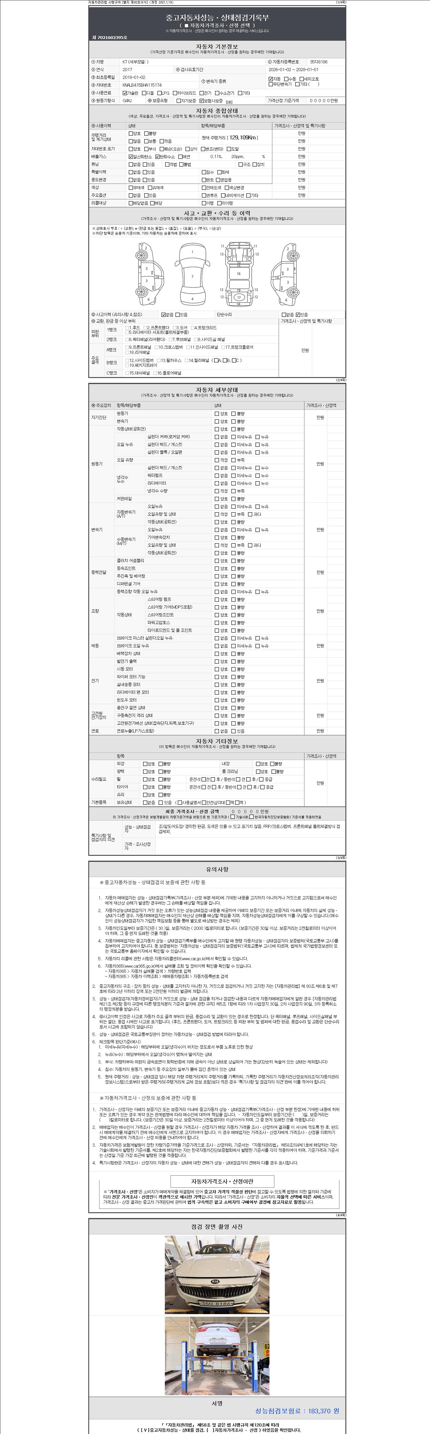 2. 차량 등록증이나 성능점검지 등을 상담자에게 요청및 확인하시고 사전에 미리 점검 하시기를 권유드립니다.