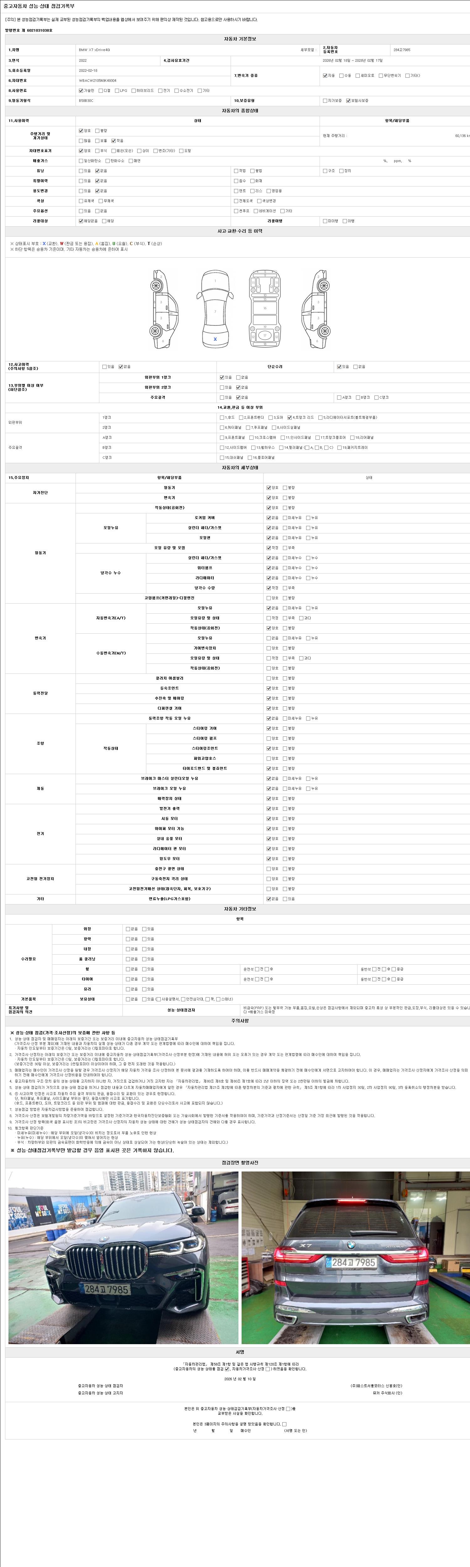 2. 차량 등록증이나 성능점검지 등을 상담자에게 요청및 확인하시고 사전에 미리 점검 하시기를 권유드립니다.