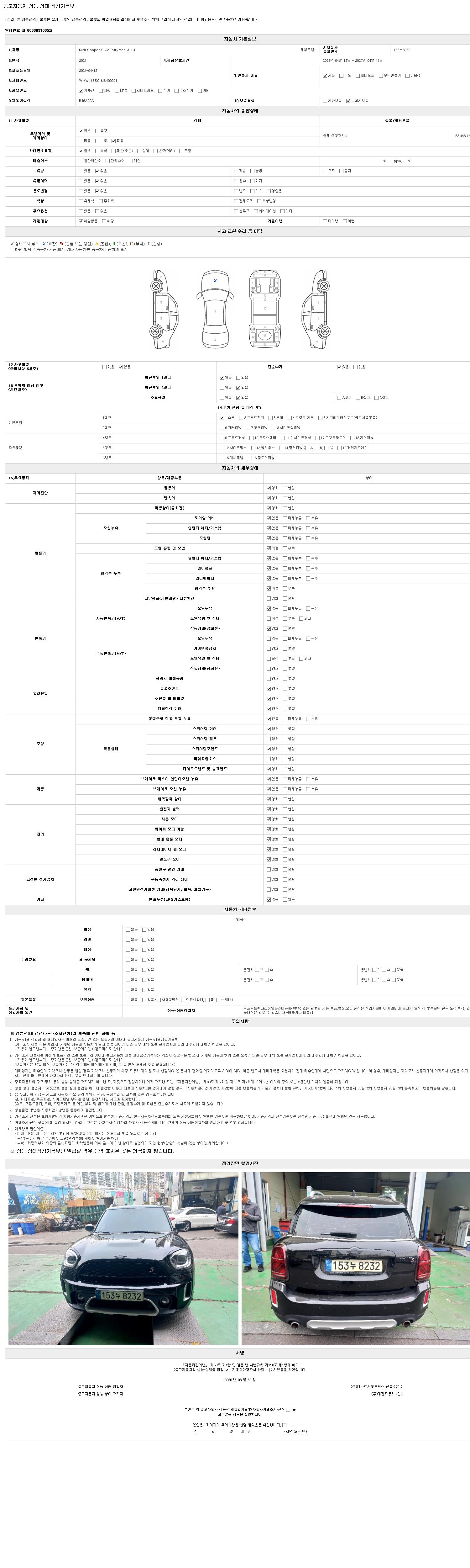 2. 차량 등록증이나 성능점검지 등을 상담자에게 요청및 확인하시고 사전에 미리 점검 하시기를 권유드립니다.