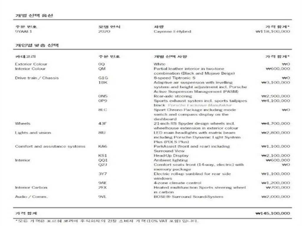 포르쉐 카이엔(PO536) (19년~) 3.0 E-하이브리드 |