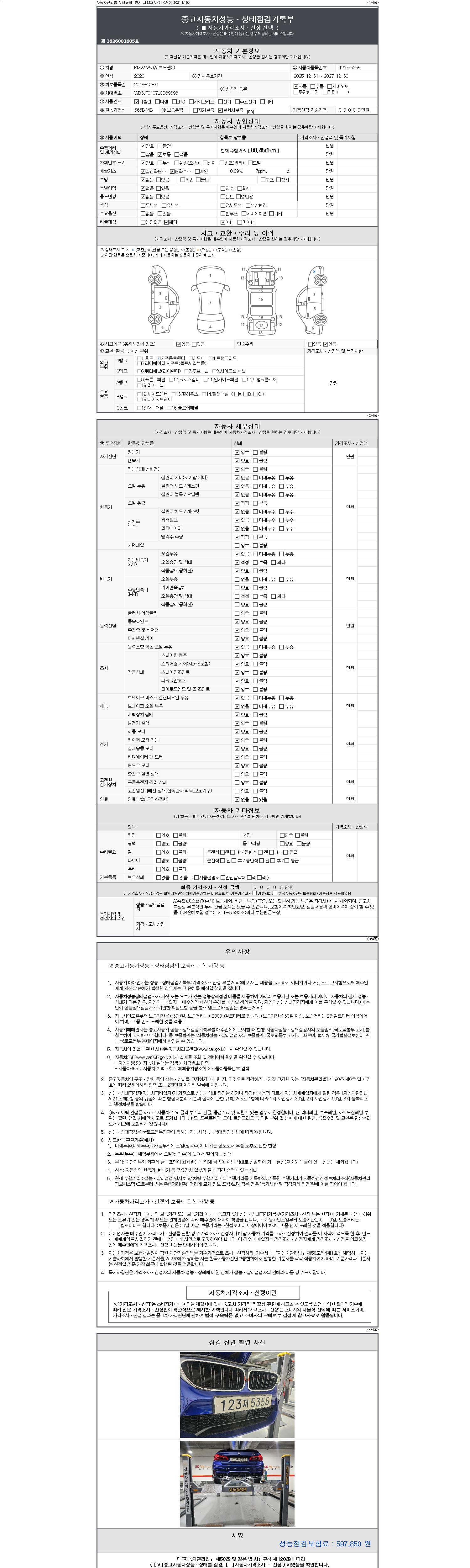 2. 차량 등록증이나 성능점검지 등을 상담자에게 요청및 확인하시고 사전에 미리 점검 하시기를 권유드립니다.