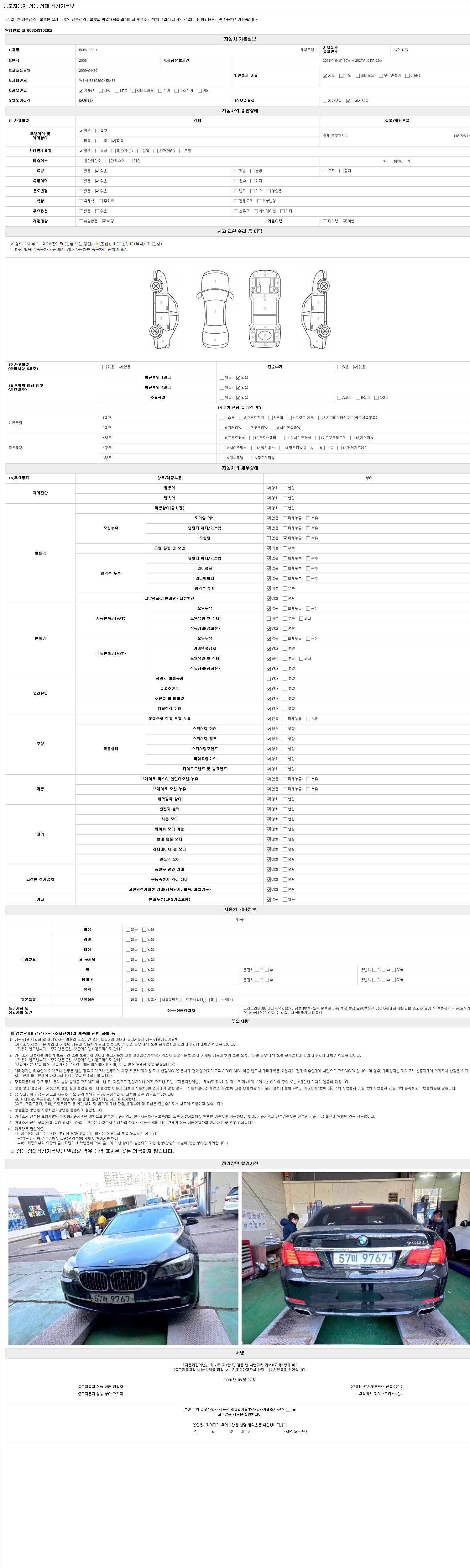 2. 차량 등록증이나 성능점검지 등을 상담자에게 요청및 확인하시고 사전에 미리 점검 하시기를 권유드립니다.