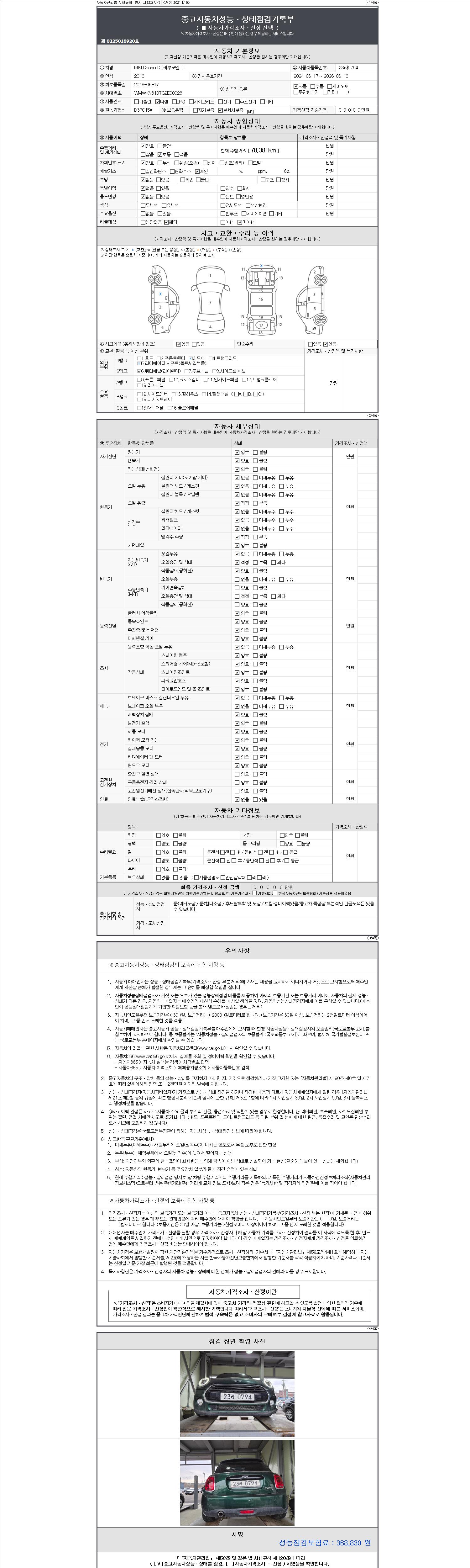 2. 차량 등록증이나 성능점검지 등을 상담자에게 요청및 확인하시고 사전에 미리 점검 하시기를 권유드립니다.