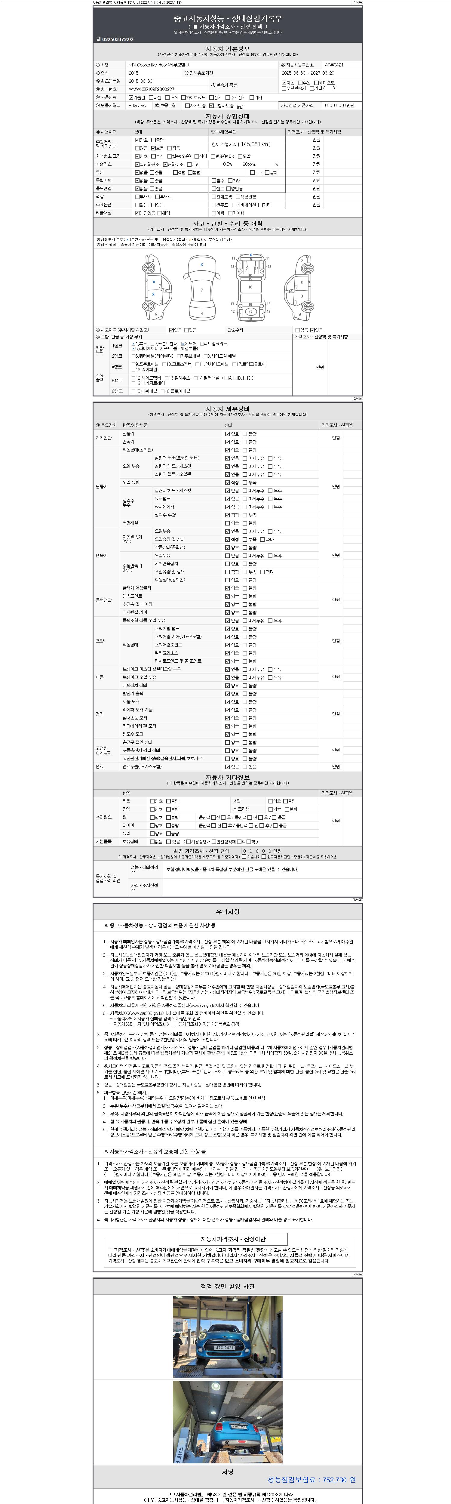2. 차량 등록증이나 성능점검지 등을 상담자에게 요청및 확인하시고 사전에 미리 점검 하시기를 권유드립니다.