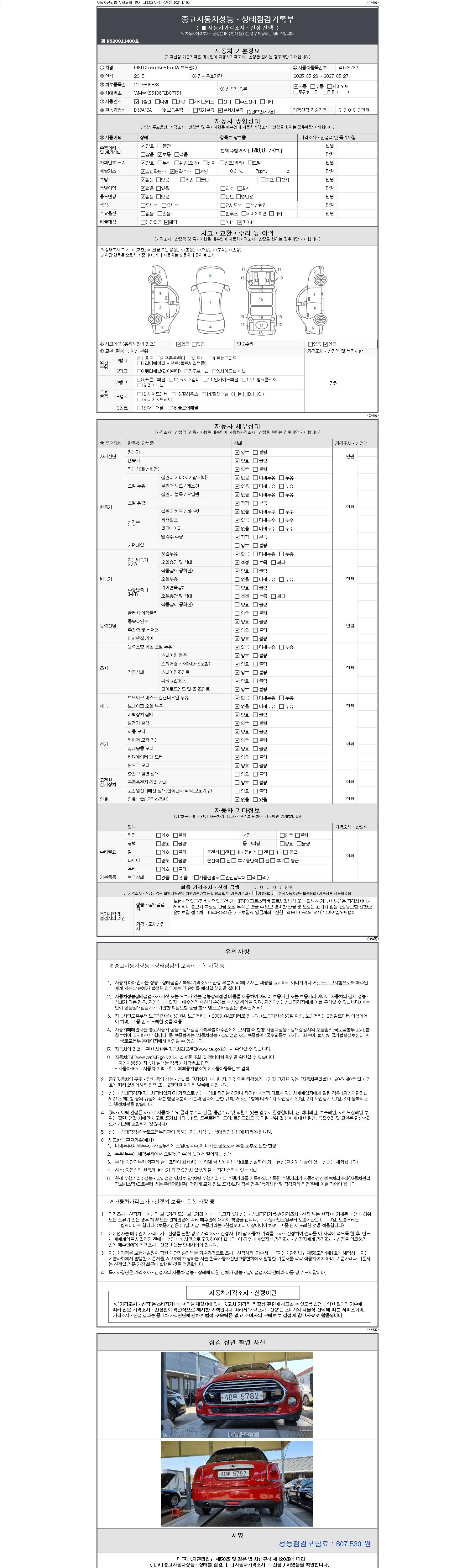 2. 차량 등록증이나 성능점검지 등을 상담자에게 요청및 확인하시고 사전에 미리 점검 하시기를 권유드립니다.