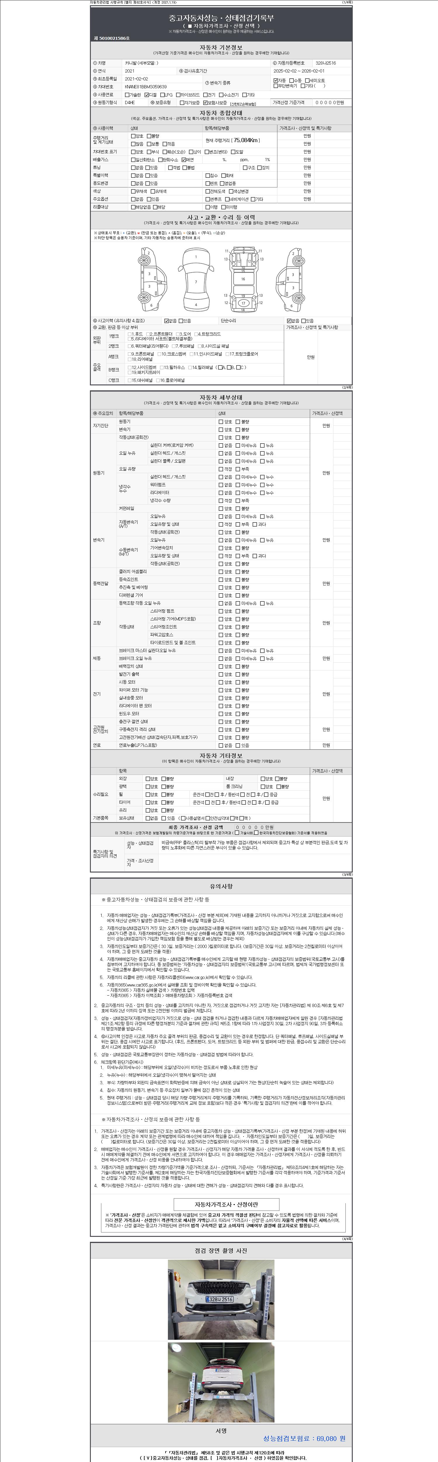 오토|경유|2021년 2월|75,084 km 328나2516| cc|흰색 |