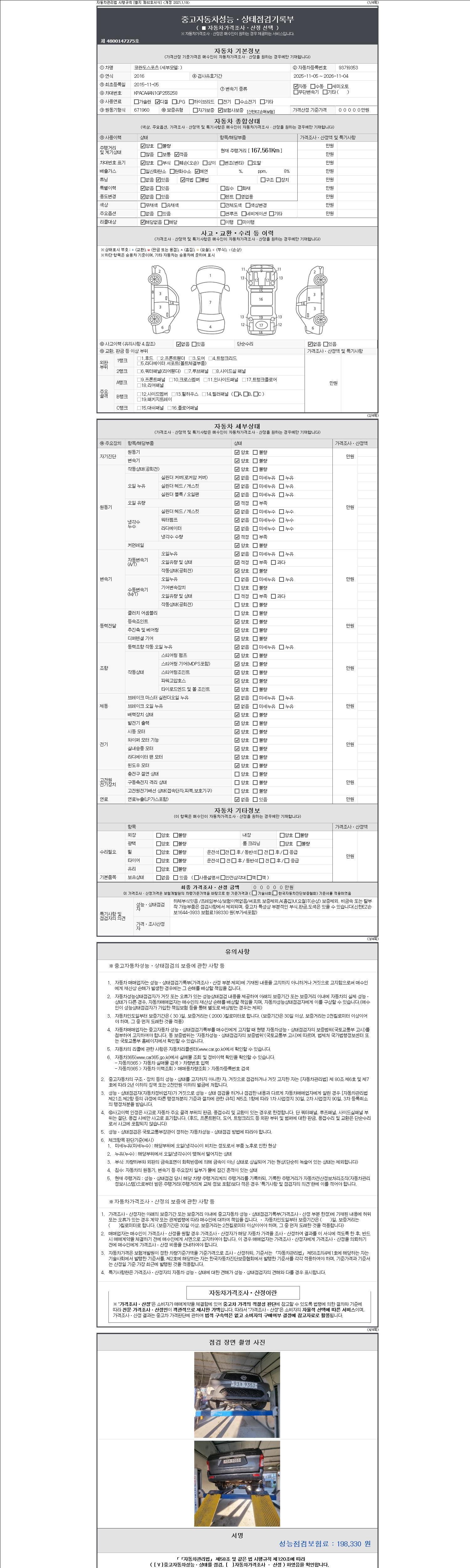 2. 차량 등록증이나 성능점검지 등을 상담자에게 요청및 확인하시고 사전에 미리 점검 하시기를 권유드립니다.