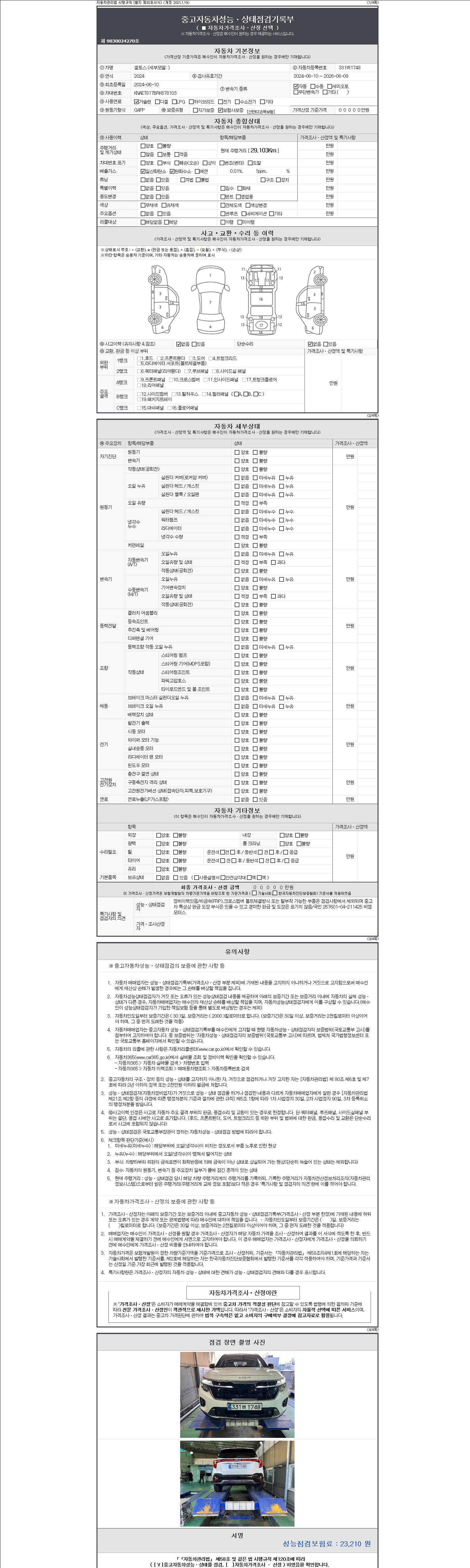 | 주행거리 | 29,103 km | 차량번호 | 331버1748 | 사고유무 | 성능기록부 참조 | 제시번호 | 제 2147483647 호 |