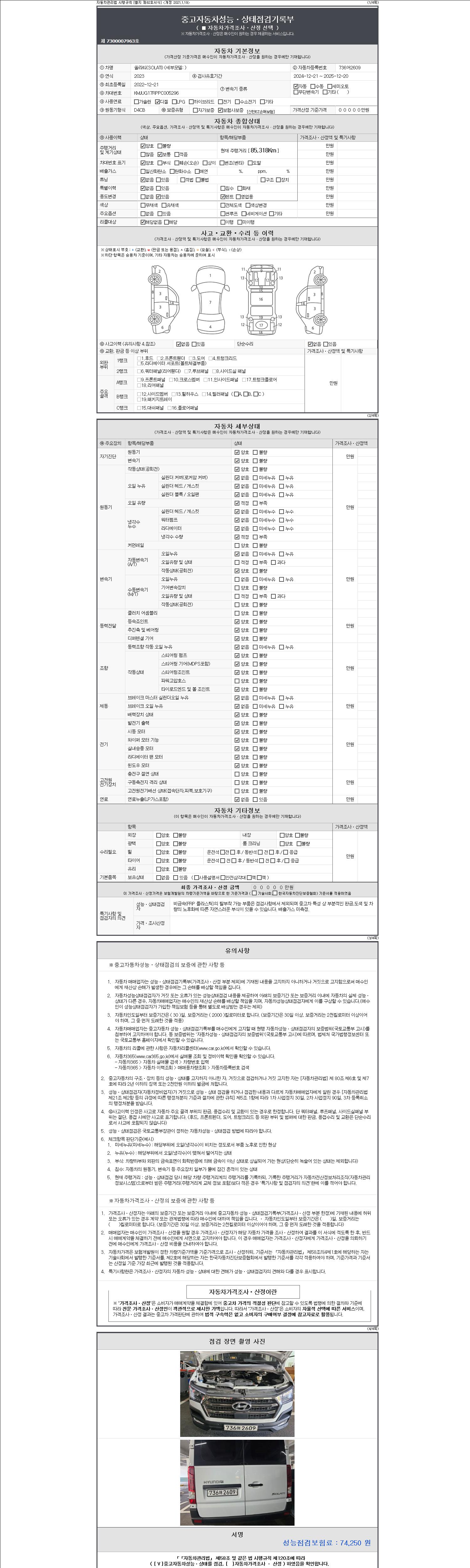 | 주행거리 | 85,318 km | 차량번호 | 736어2609 | 사고유무 | 성능기록부 참조 | 제시번호 | 제 2147483647 호 |