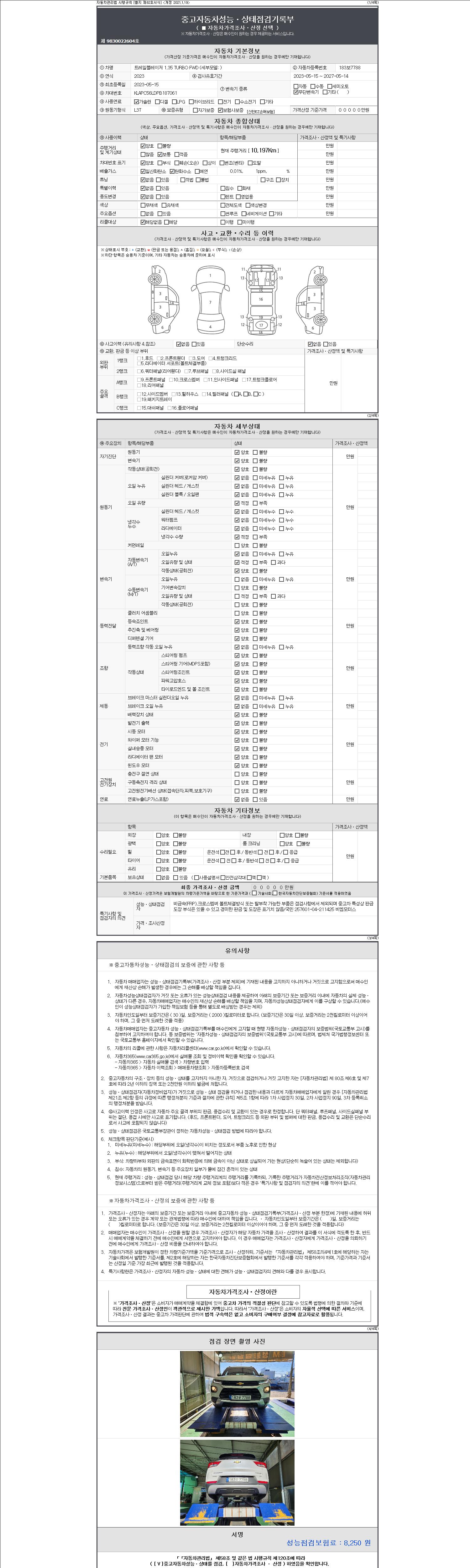 | 주행거리 | 10,197 km | 차량번호 | 183보7788 | 사고유무 | 성능기록부 참조 | 제시번호 | 제 2147483647 호 |