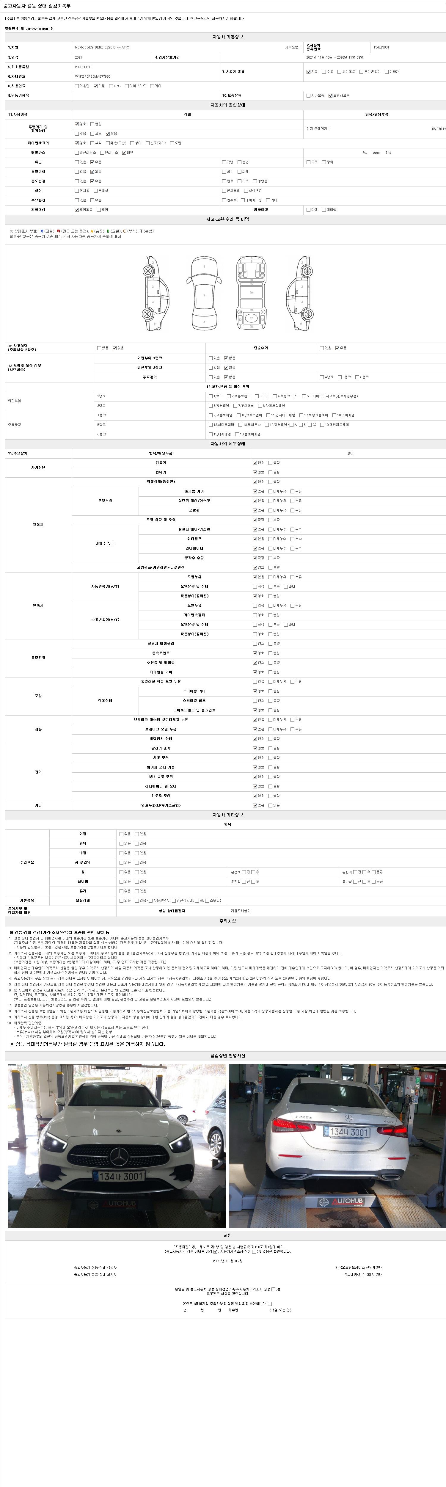 자동차관리법 시행규칙 제120조의 규정에 따라 별지 제 82호서식 《중고자동차 성능, 상태점검 기록부》를 발행한 성능, 상태점검자 및 매매자는 아래의 보증기간 또는 보증거리 이내의 중고자동차, 성능점검 기록부에 기재된 내용과 자동차의 실제 성능, 상태가 다른 경우 계약 또는 관계법령에 따라 매수인에 대하여 책임을 집니다.