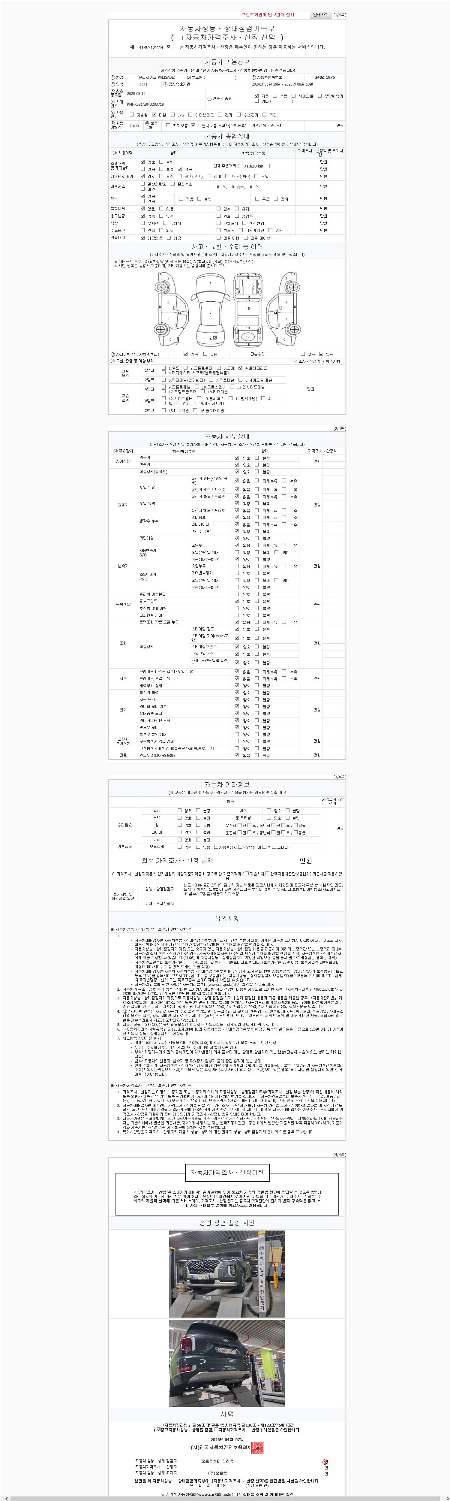 - 2. 차량 등록증이나 성능점검지 등을 상담자에게 요청및 확인하시고 사전에 미리 점검 하시기를 권유드립니다.