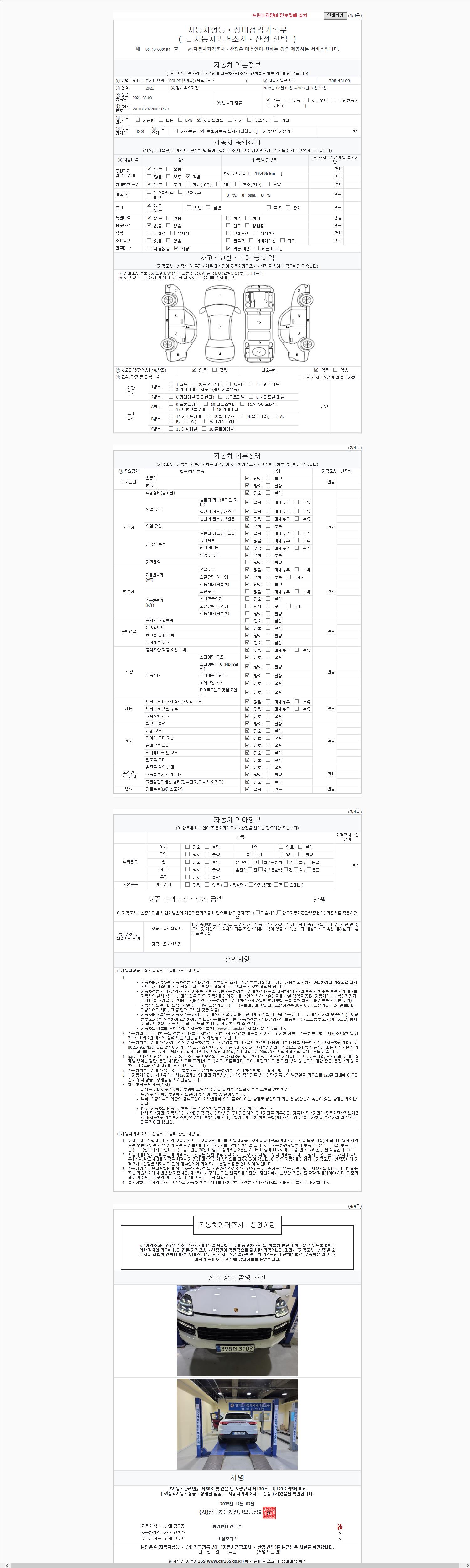 | 주행거리 | 12,496 km | 차량번호 | 398더3109 | 사고유무 | 성능기록부 참조 | 제시번호 | 제 2147483647 호 |