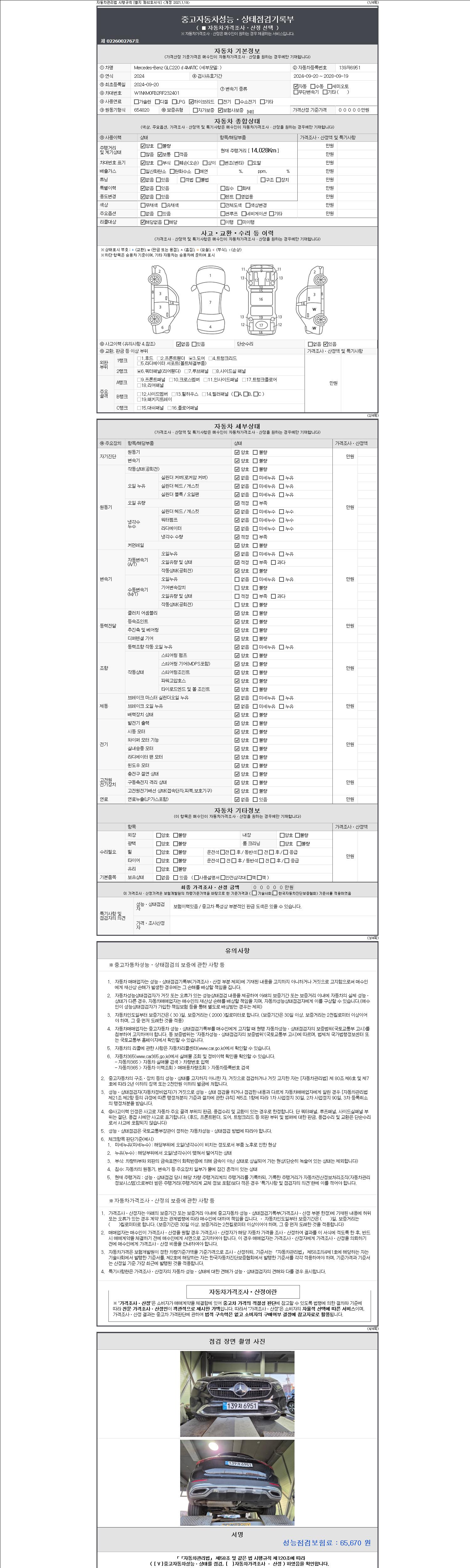 | 주행거리 | 14,028 km | 차량번호 | 139저6951 | 사고유무 | 성능기록부 참조 | 제시번호 | 제 2147483647 호 |