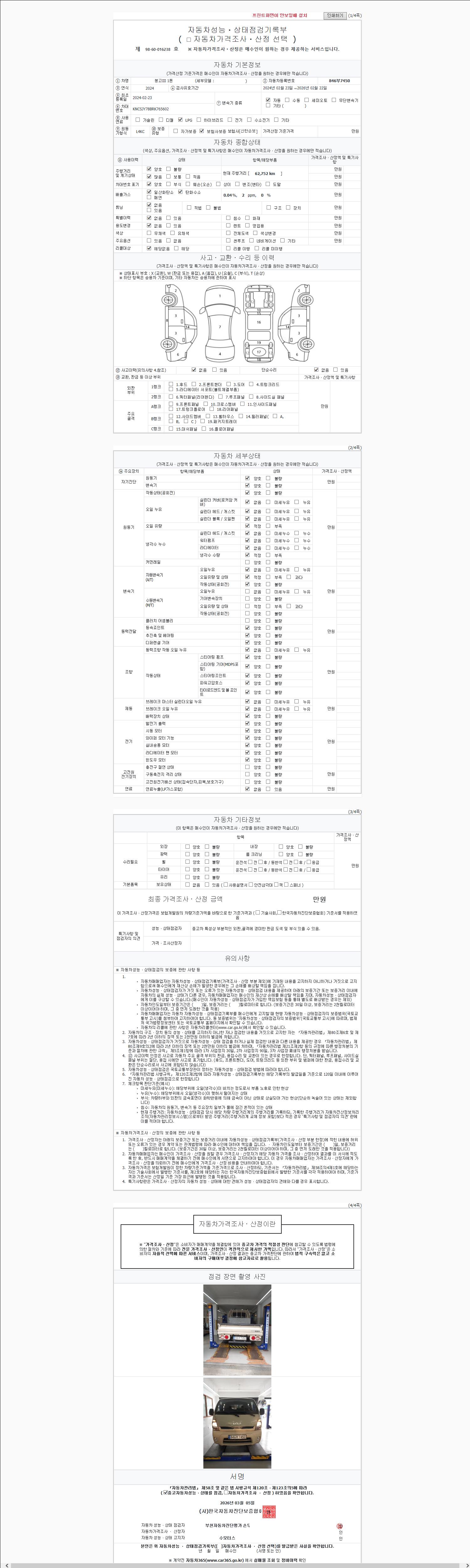 - 2. 차량 등록증이나 성능점검지 등을 상담자에게 요청및 확인하시고 사전에 미리 점검 하시기를 권유드립니다.