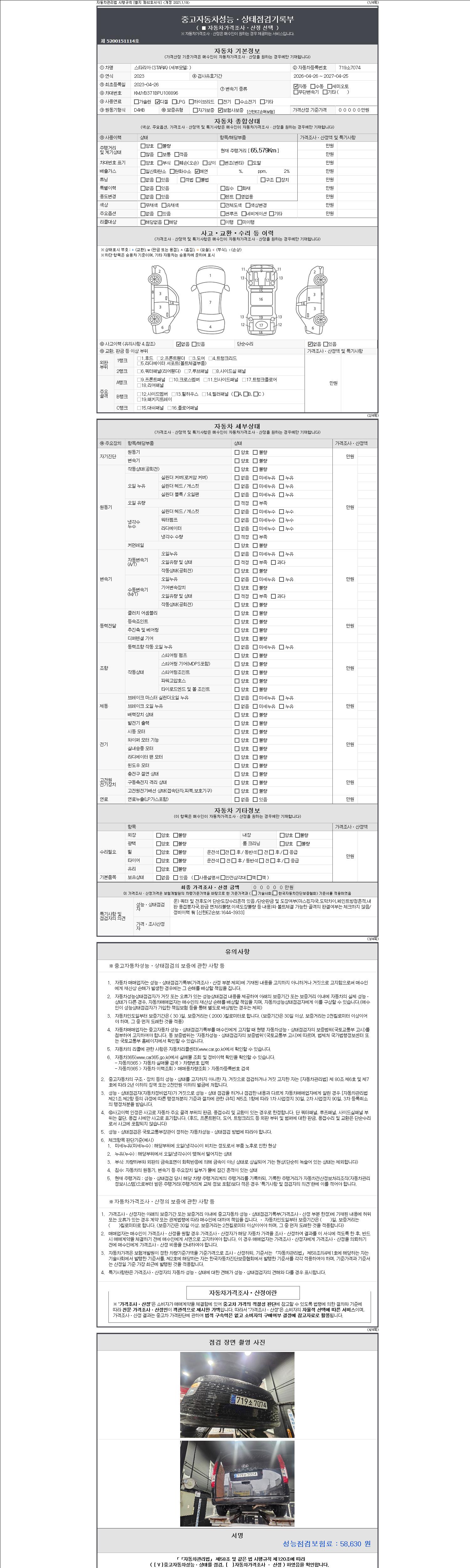 | 주행거리 | 65,576 km | 차량번호 | 719소7074 | 사고유무 | 성능기록부 참조 | 제시번호 | 제 2147483647 호 |