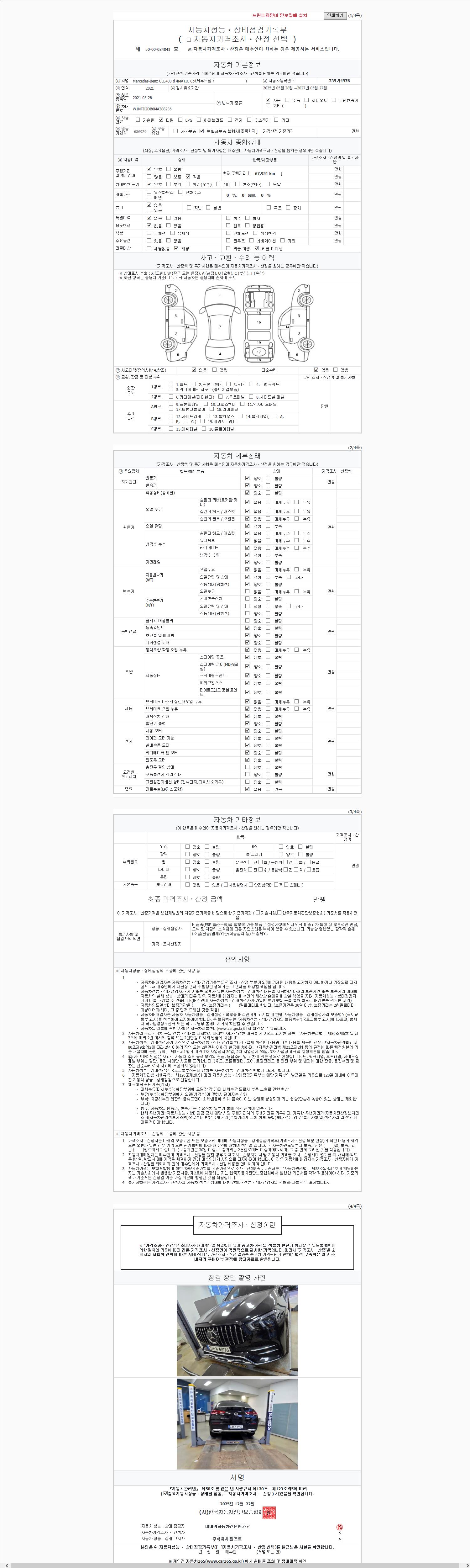 | 주행거리 | 67,951 km | 차량번호 | 335가4976 | 사고유무 | 성능기록부 참조 | 제시번호 | 제 2147483647 호 |