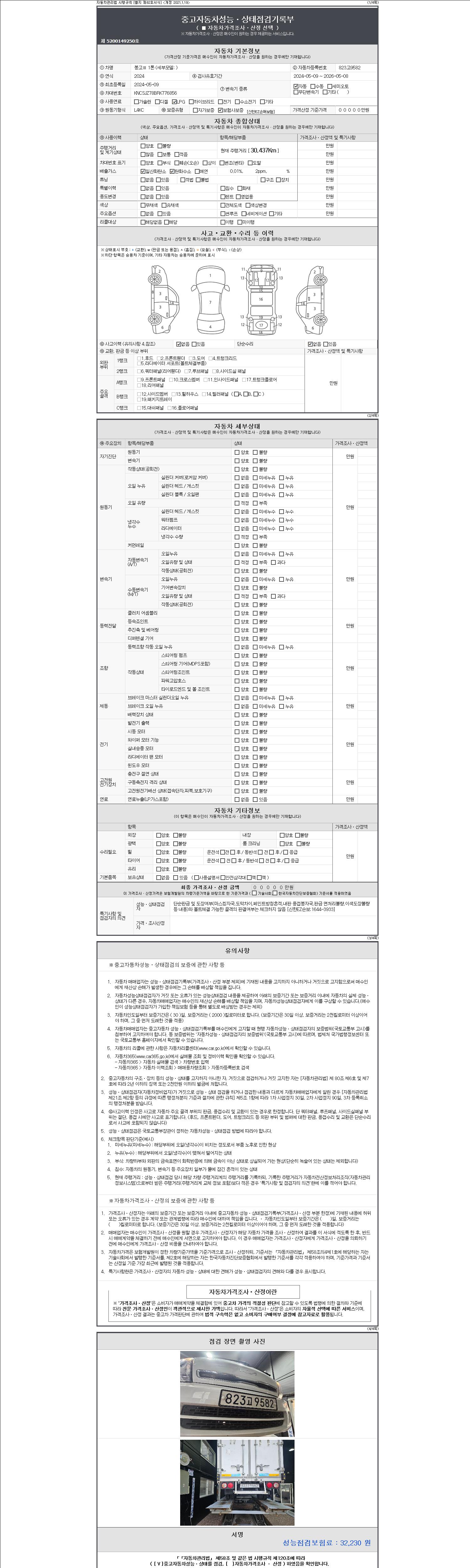 | 주행거리 | 30,437 km | 차량번호 | 823고9582 | 사고유무 | 성능기록부 참조 | 제시번호 | 제 2147483647 호 |