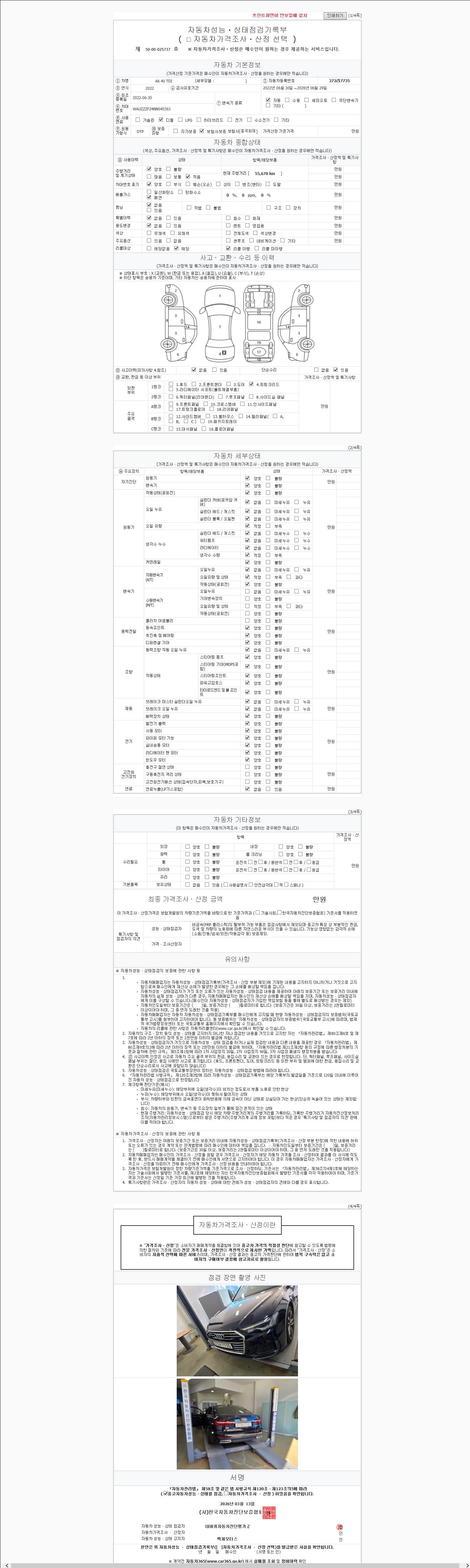 - 2. 차량 등록증이나 성능점검지 등을 상담자에게 요청및 확인하시고 사전에 미리 점검 하시기를 권유드립니다.