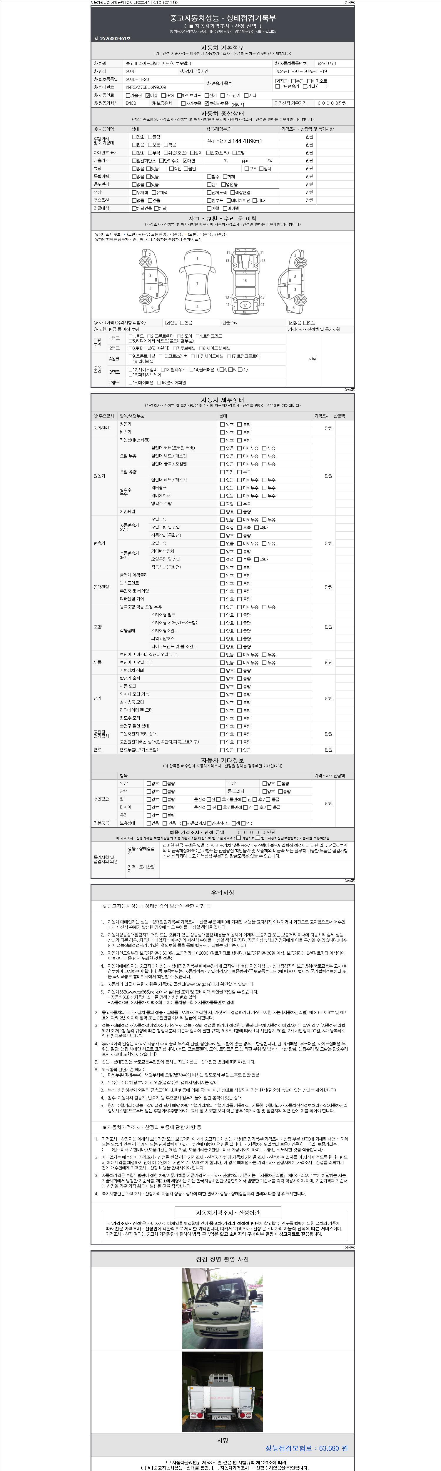 | 주행거리 | 44,416 km | 차량번호 | 92서0776 | 사고유무 | 성능기록부 참조 | 제시번호 | 제 2147483647 호 |